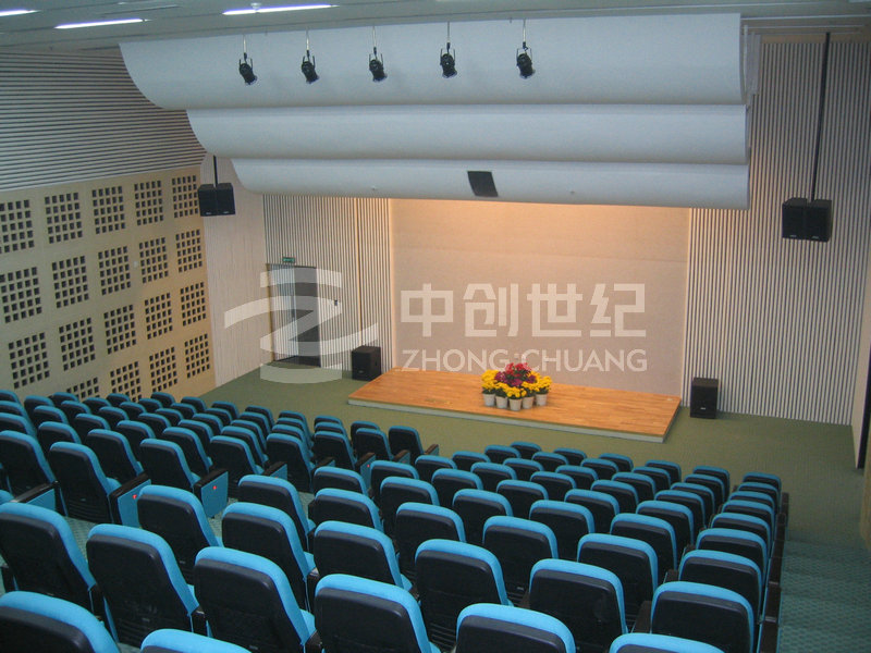 由我司設計、施工的科研樓多功能演藝廳包括專業擴聲音響、舞臺燈光、舞臺機械、舞臺幕布、視頻顯示、同聲傳譯和中央控制系統,滿足客戶舉辦大型會議、 報告、演出等功能需求,受到業主和專家的一致好評。