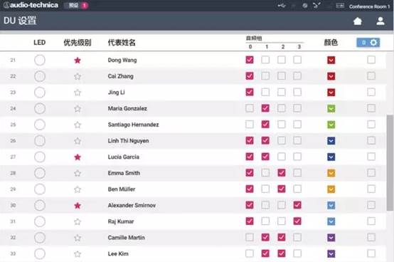 每個話筒底座都可以進行獨立編程,主席席位可以隨意設定,突破國內1+N的席位配置,并且話筒底座有多色LED顯示,隨意設置LED顏色,更加直觀識別會議人身份,提升您的會議服務,讓您 的會議更專業(yè)更細節(jié)。